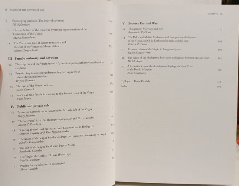 Routledge 2005 383 pages 18x3 4x24 6cm. 2005. Cartonné jaquette. 383 pages. Cet ouvrage collectif dirigé par Maria Vassilaki rassemble les contributions de spécialistes internationaux issues d'un congrès tenu en 2001. Il propose une étude interdisciplinaire large sur la perception et la représentation de la Vierge Marie (Theotokos) dans le monde byzantin en lien avec une exposition majeure au Musée Benaki d'Athènes