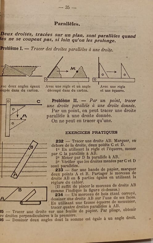 Hachette et cie. 1918. In-8. Cartonné. Etat passable, Plats abîmés, Coiffe en pied abîmée, Papier jauni. Paginé de 3 à 284 - manque les 2 premières pages, page de titre, page de faux titre - papier jauni - tâche d'encre violette sur quelques pages altérant la lecture - coiffes abîmées - déchirure sur le 1er plat - plats dérfaîchie.. . . . Classification Dewey : 372.7-Livre scolaire : mathématiques