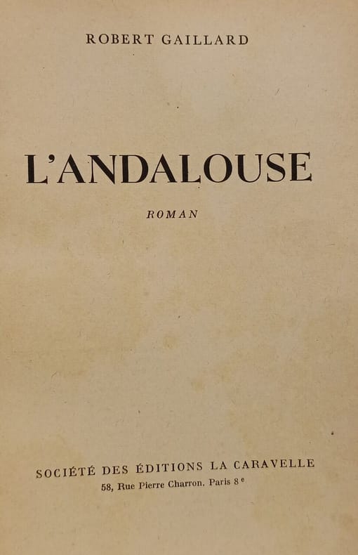 Société des éditions La Caravelle 1947 in8. 1947. Relié. Robert Gaillard relate ses impressions et rencontres lors d'un voyage en Andalousie région du sud-ouest de l'Espagne où il découvre une culture riche et complexe. Le livre publié en 1945 est présenté comme un roman