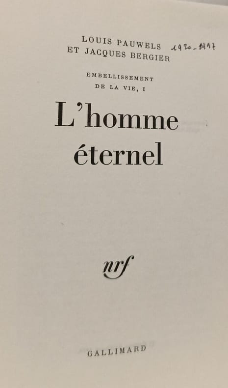 Gallimard 1970 in8. 1970. Broché. L'Homme éternel est le premier tome d'une série intitulée 'Embellissement de la vie' conçue comme un manuel par les auteurs Louis Pauwels et Jacques Bergier. Publié dix ans après 'Le Matin des magiciens' cet essai explore le passé l'avenir et l'espace intérieur de l'homme à travers la méthode du 'réalisme fantastique' visant à redonner le sens du merveilleux et à proposer une nouvelle perspective sur la vie
