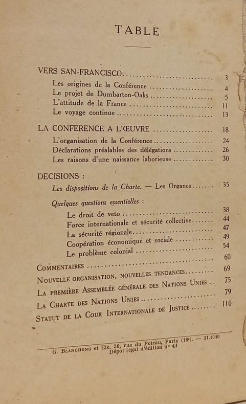 Office Français d'Édition 2026 in8. 2026. Broché. Ouvrage publié en 1945 par Jean Dupuy qui traite de la conférence de San Francisco et de la rédaction de la Charte des Nations Unies offrant une analyse de cet événement fondateur de l'ONU