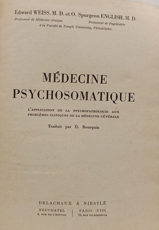 ---- PREMIERE EDITION FRANCAISE ---- BEL EXEMPLAIRE ---- "In 1943 a new dynamic trend came to the foreground - psychosomatic medicine. Two classical works were published in that year. Those of WEISS and ENGLISH and of Flanders Dunbar". (Ellenberger p. 863) ---- Postel & Quetel (Weiss)**5277/F5DE-CAV.H3