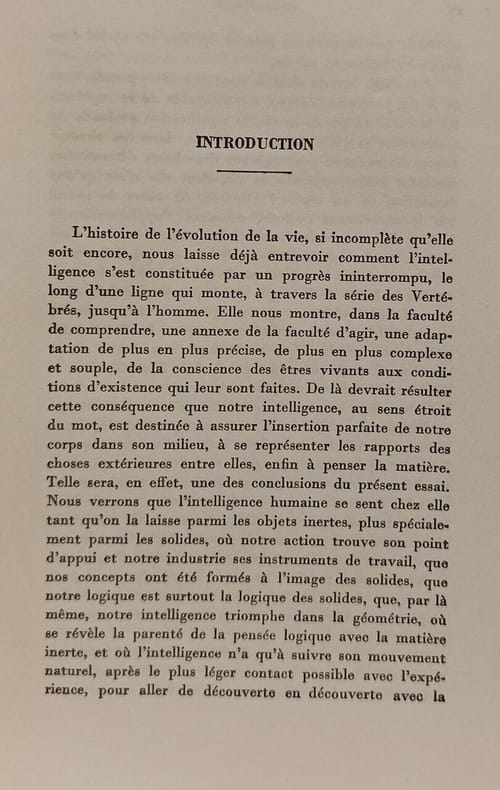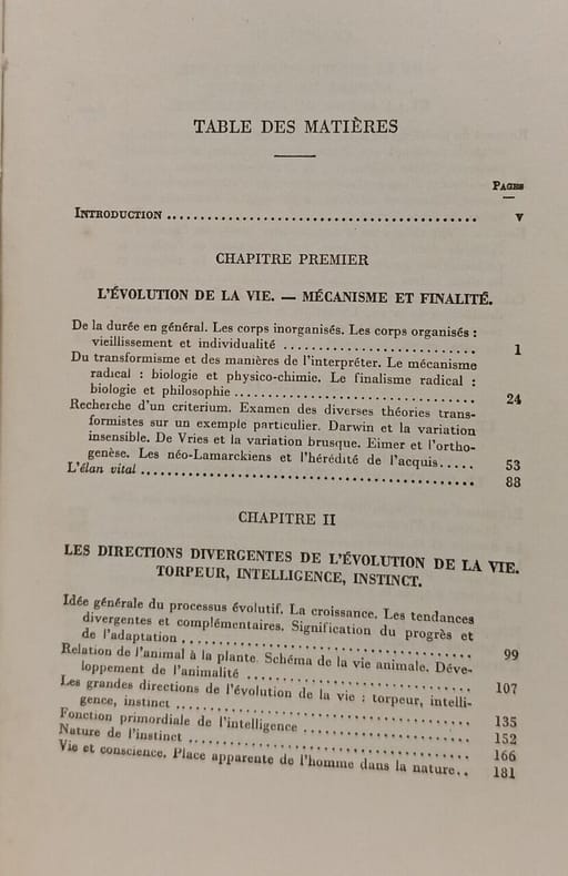Un des exemplaires numérotés du tirage sur vergé fin à la forme ; légèrement teinté paille. ''Si la vie est évolution, alors elle doit expliquer jusqu’à la connaissance, l’intelligence, la science et la technique de l’homme, homo faber ; s’il y a en elle de la création, alors ce n’est pas par un postulat extérieur, mais dans son histoire et dans notre vie même qu’on doit l’attester et l’expérimenter. Dans L’Évolution créatrice, Bergson pousse ainsi la théorie de l’évolution et l’expérience de la « durée » jusqu’au bout, sans admettre ni une création transcendante ni une vie sans émergence ou nouveauté. Les conséquences traversent toute la science, la théorie de la connaissance, et la philosophie, de 1907 à aujourd’hui''. Quelques tâches en marge du second plat. Du reste, très belle condition.