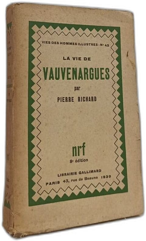 Librairie Gallimard 2026 in12. 2026. Broché. Biographie de Luc de Clapiers marquis de Vauvenargues moraliste et philosophe français du XVIIIe siècle écrite par Pierre Richard et publiée en 1930 dans la collection 'Vies des Hommes illustres' des éditions Gallimard