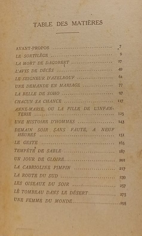 Editions Albin Michel 1945. In-12 broché à grandes marges, de 312 pages, au format 19 x 12 cm ( hors marges ). Couverture avec titre imprimé. Dos carré, très légèrement insolé. Plats et intérieur frais. Exemplaire non coupé. Un des 300 exemplaires numérotés sur Vélin de Rives ( n° 141 ), seul grand papier, après 50 exemplaires sur Vergé de Montval. Superbe état. Edition originale de ces nouvelles mettant en scène Légion Etrangère et Légionnaires. Rare dans un tel état de fraicheur, proche du parfait.