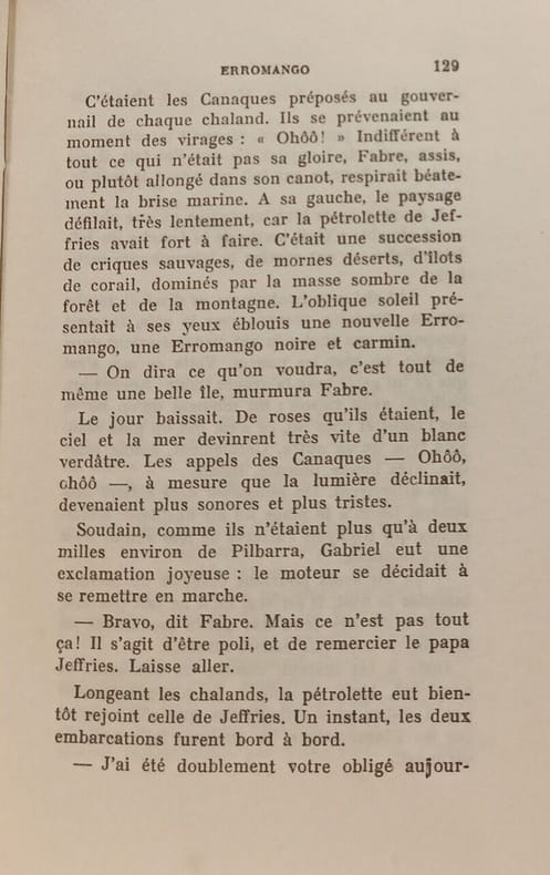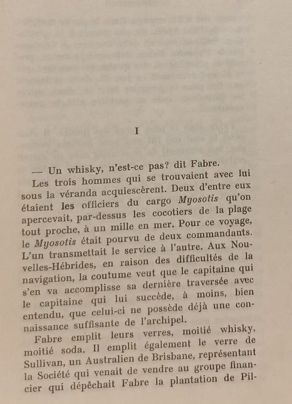 Albin Michel 2026 in12. 2026. Broché. Le roman suit Fabre un jeune ingénieur agronome français qui débarque sur l'île d'Erromango dans l'archipel des Nouvelles-Hébrides (actuel Vanuatu) avec le projet ambitieux d'y développer un élevage de moutons. Confronté à l'isolement aux conditions climatiques extrêmes et à la solitude son équilibre mental se délite progressivement le plongeant dans la paranoïa et la confusion entre souvenirs et imagination jusqu'à une dérive psychologique complète
