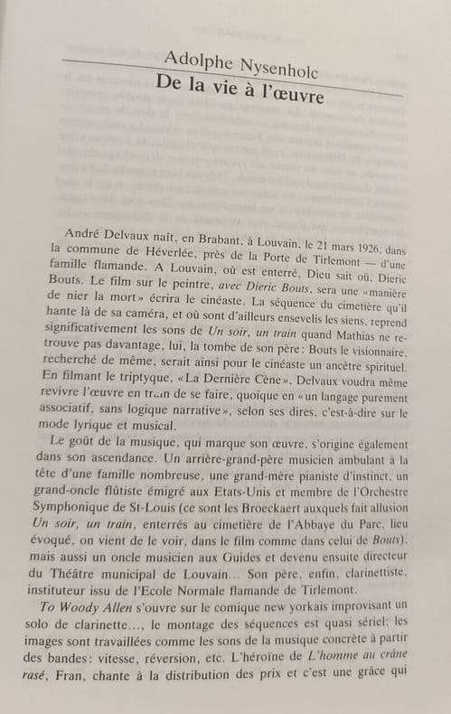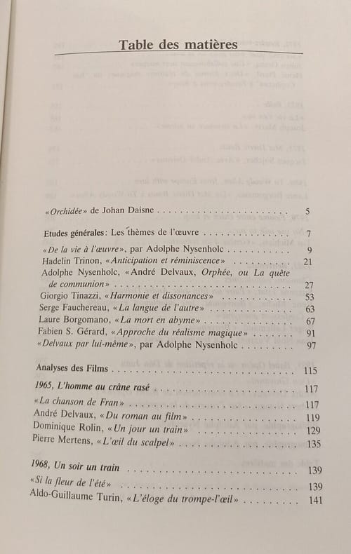 Editions de l'Université de Bruxelles 1985 in8. 1985. Broché. Premier ouvrage d'envergure consacré à l'ensemble de l'œuvre cinématographique d'André Delvaux ce recueil collectif édité par Adolphe Nysenholc réunit des textes d'auteurs variés pour explorer les multiples aspects de l'œuvre du cinéaste notamment ses thèmes comme le mythe d'Orphée la présence de la mort et la nature de son réalisme magique
