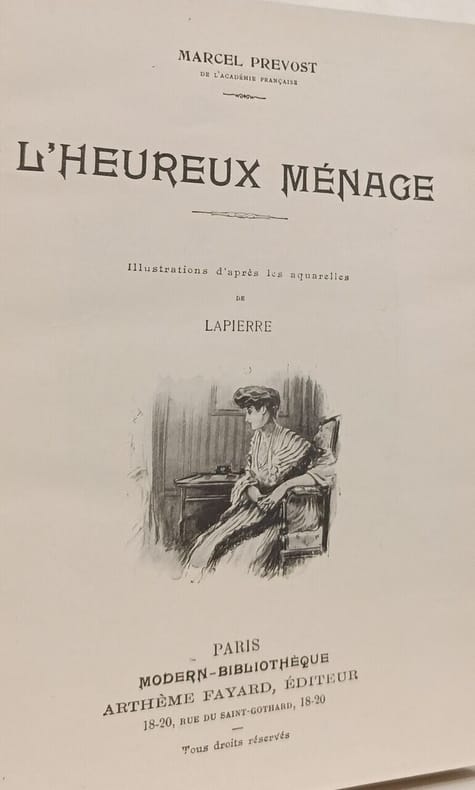 L'Heureux Ménage, édition originale, reliure demi toile, 280 pp, 18 x 11 cm, trés bon état