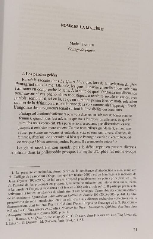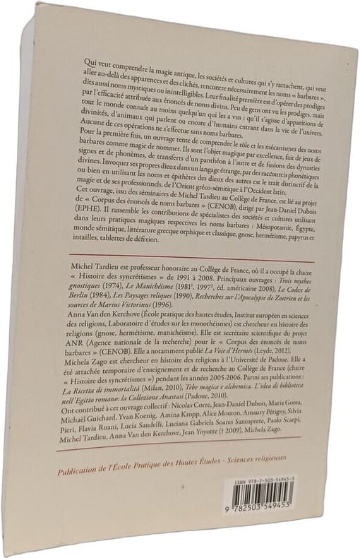 BREPOLS 2013 426 pages 3x23x15cm. 2013. Broché. 426 pages. Cet ouvrage collectif dirigé par Michel Tardieu constitue la première étude d'ensemble visant à comprendre le rôle et les mécanismes des 'noms barbares' en tant que pratique magique de nomination. Il analyse ces noms comme des objets magiques complexes faits de jeux de signes et de phonèmes et étudie leur transfert entre panthéons et la fusion des dynasties divines. Un chapitre spécifique par exemple examine les noms magiques d'Aphrodite dans un contexte de recette égyptienne de séduction
