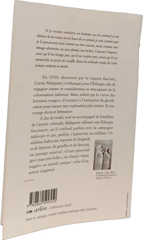 ARLEA 2026 264 pages 12 4x2 2x20 2cm. 2026. Broché. 264 pages. Recueil d'articles écrits en 1939 par le journaliste et écrivain italien Curzio Malaparte pour le Corriere della Sera suite à un reportage en Éthiopie. L'ouvrage décrit la situation du pays après sa conquête par le régime fasciste italien mêlant réalité et imaginaire dans un style littéraire distinctif