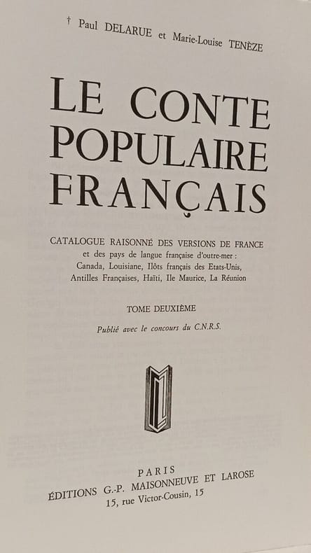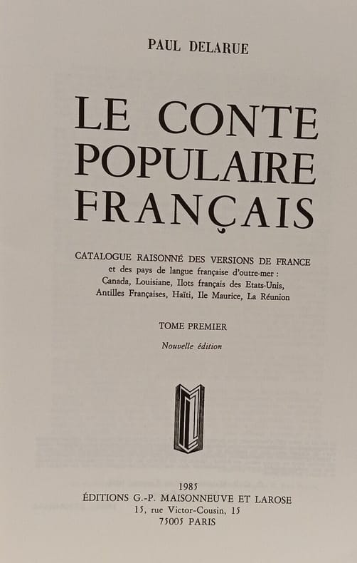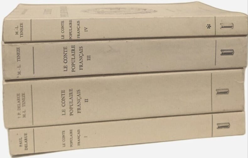 G.-P. Maisonneuve et Larose 1985 in8. 1985. Broché. 4 volume(s). Ouvrage de référence majeur communément appelé 'le Delarue-Tenèze' qui constitue un catalogue raisonné des versions françaises et francophones de contes populaires. Il est structuré selon la classification Aarne-Thompson et vise à combler un manque dans l'étude du folklore français en analysant notamment différentes versions orales de contes comme 'Le Petit Chaperon rouge'