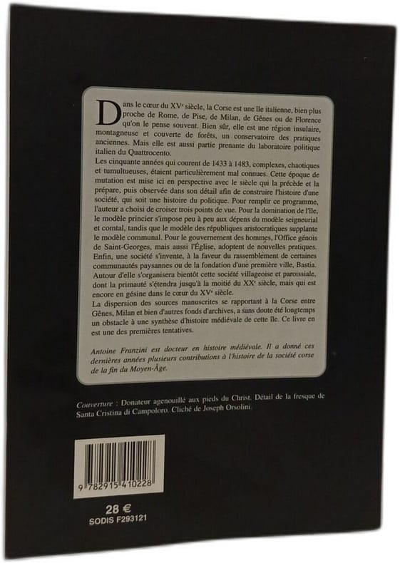ALAIN PIAZZOLA 2005 250 pages 24x4 4x17 6cm. 2005. Broché. 250 pages. Cet ouvrage historique analyse la Corse au XVe siècle entre 1433 et 1483 une période de mutation marquée par l'expérimentation de nouvelles formes de domination génoise via l'Office de Saint-Georges. L'auteur Antoine Franzini propose une synthèse qui croise histoire politique sociale et des mentalités pour construire une histoire de la société corse de cette époque