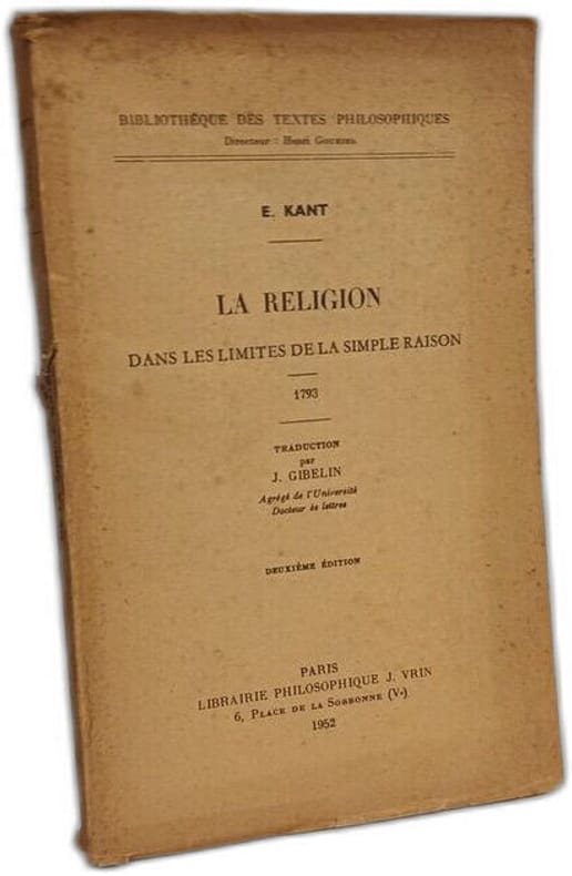 Librairie Philosophique J. Vrin 1952 in8. 1952. Broché. Dans cet ouvrage de 1793 Emmanuel Kant entreprend une exploration philosophique visant à réconcilier foi et rationalité en affirmant que la véritable religion doit se fonder sur des principes moraux plutôt que sur des dogmes et des rites. Il critique les religions établies pour leur tendance à la superstition et place la raison morale au-dessus de la révélation cherchant à définir les limites de la religion par la seule raison