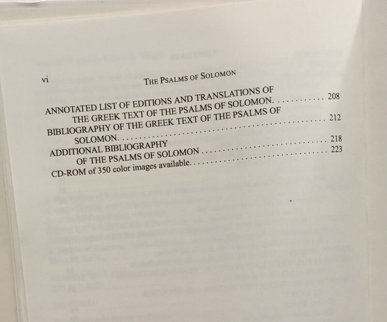 Continnuum-3PL 2007 238 pages 16x23 5x2cm. 2007. Relié. 238 pages. Il s'agit de la première édition critique complète du texte grec des Psaumes de Salomon un hymnaire pseudépigraphique juif. L'ouvrage édité par le professeur Robert B. Wright est présenté comme fournissant l'attente la plus détaillée du Messie juif avant le Nouveau Testament