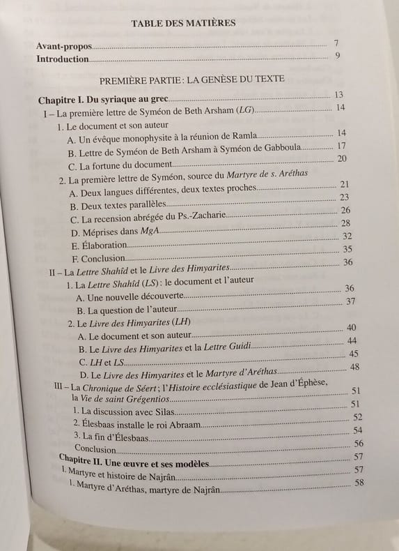Amis du Centre d'histoire et de civilisation de Byzance 2007 317 pages 17 7x24 3x2 1cm. 2007. Broché. 317 pages. Il s'agit d'une édition critique et d'une étude du martyre grec de saint Aréthas et de ses compagnons exécutés à Najrân en Arabie du Sud le 24 octobre 523. Le texte qui est une traduction d'originaux syriaques raconte le martyre des Najrânites l'expédition punitive du roi d'Éthiopie contre le roi juif Dounaas et se termine par l'abdication du roi Élesbaas. L'ouvrage comprend une traduction une annotation et un appendice sur les versions orientales