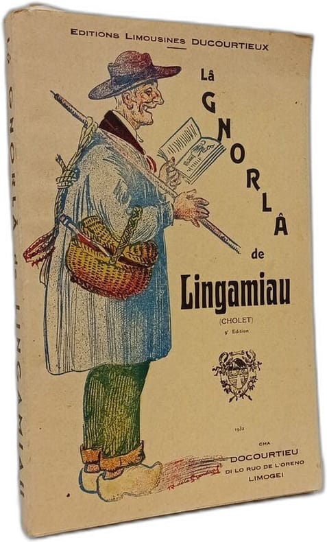 Editions Limousines Ducourtieux 1932 in8. 1932. Broché. Recueil de farces (gnorles) écrites en patois limousin par Édouard Cholet sous le pseudonyme Lingamiau à la fin du XIXe siècle. L'ouvrage rassemble des histoires et poèmes dans cette langue régionale parlée à l'époque aussi bien en ville qu'à la campagne autour de Limoges
