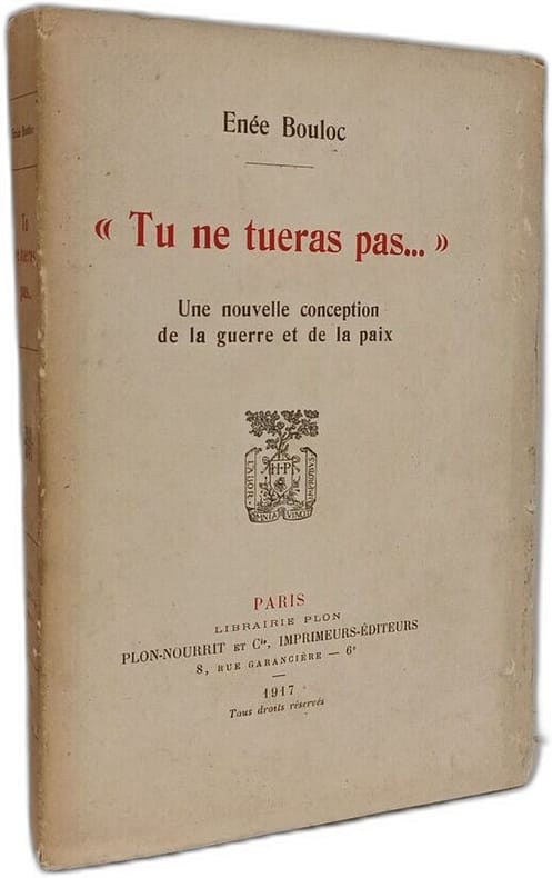 PLON-NOURRIT ET Cie IMPRIMEURS-ÉDITEURS 1917 in8. 1917. Broché. L'ouvrage 'Tu ne tueras pas' d'Enée Bouloc propose une réflexion sur une nouvelle conception de la guerre et de la paix. Il s'agit d'un essai qui aborde les questions éthiques et politiques liées aux conflits armés