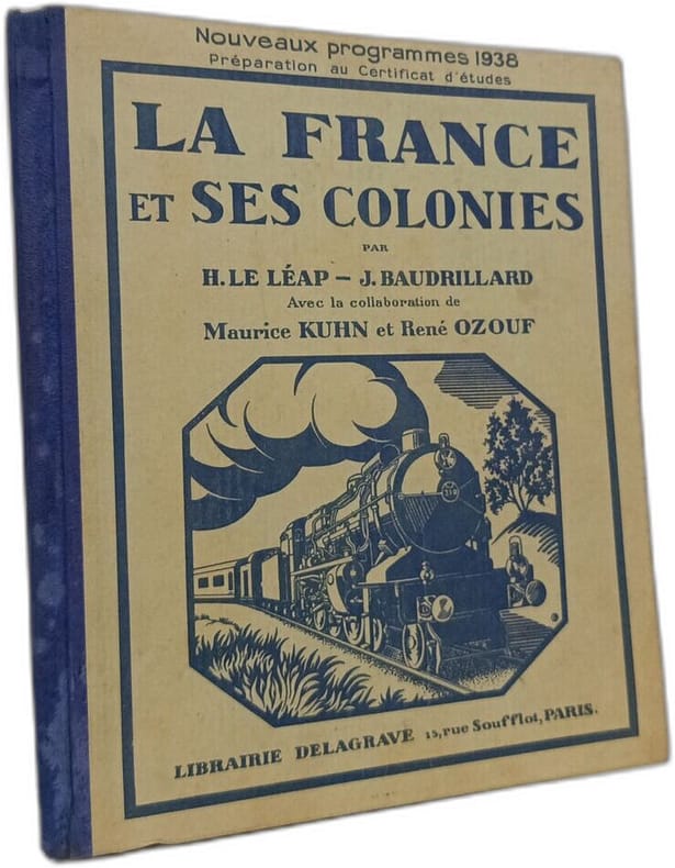 Paris Librairie Hachette 1889 1 vol. (29 x 21 cm) ( Poids = 2,5 kg )592 (1) pp.. Texte sur 2 col.252 gravures dont beaucoup de pl. p. et 18 cartes.Avec Index alphabétique, Table des gravures et Table des matières.Contient : Algérie ( le chap. V s' étend jusqu'à la Tunisie), colonies d'Afrique (Noire), d'Asie, d'Amérique, d'Océanie.Percaline rouge éditeur signée A. Souze. Dos lisse et plat supérieur ornés et dorés.Plat supérieur décoré d'un encadrement représentant des ancres, des dauphins, des lampes torches avec des cornes d' abondance, des épis de blé...tous motifs dorés. Au centre sur fond de percaline chagrinée, une allégorie portant casque et armure à l'antique, entièrement dorée tient des épis de blé. Plat inférieur estampé à froid. Toutes tranches dorées. Dos insolé. Accrocs à une coupe et à un coin. Qqs cahiers légèrement déboîtés. Beaucoup de rousseurs surtout au début.