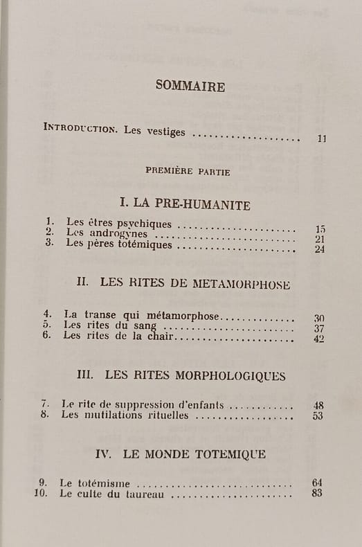 Collection Rites et traditions mystérieuses. Sommaire: La pré humanité, Les rites de métamorphose, Les rites morphologiques, Le monde totémique... Classification Dewey : 133-Parapsychologie, occultisme et alchimie