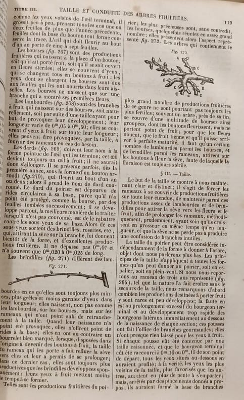 Paris LIBRAIRIE AGRICOLE DE LA MAISON RUSTIQUE 1865 un volume grand in-8°, 672 pp. Reliure en demi-basane bleue, dos lisse orné du titre, de l'année et de tomaison doré.e.s ainsi que de motifs estampés. (dos décoloré et frotté, feuillets faiblement brunis). Texte sur deux colonnes accompagné de 122 figures en noir et de 12 planches en couleurs (chromolithographie).