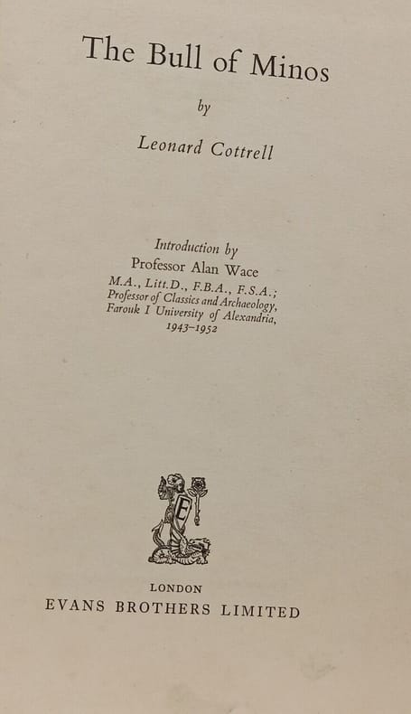 EVANS BROTHERS LIMITED 1953 in8. 1953. Cartonné. The Bull of Minos de Leonard Cottrell raconte les grandes découvertes archéologiques de la Grèce antique évoquant les civilisations vieilles de 3000 ans ressuscitées par les fouilles le travail des archéologues sur ces sites poussiéreux et la vie dans un monde de dieux et de guerriers