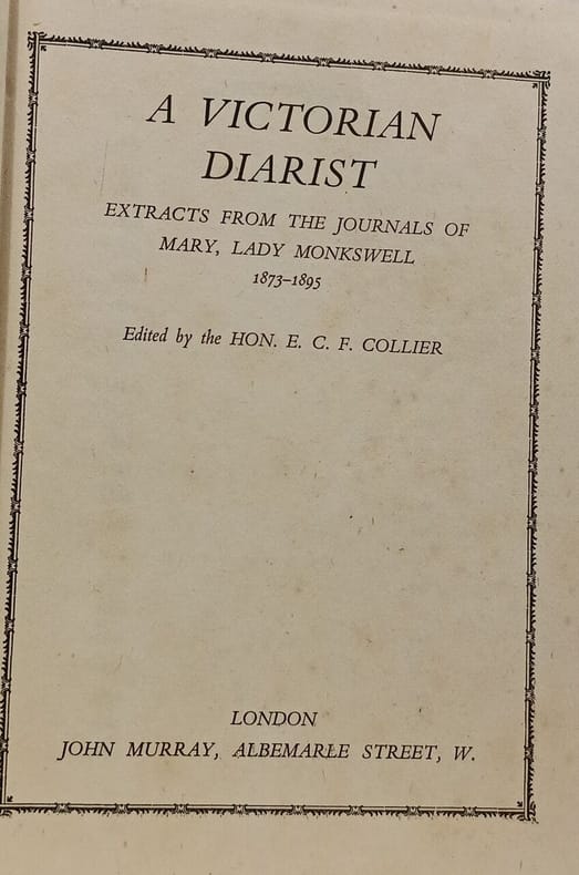 John Murray 1944 in8. 1944. Cartonné. Il s'agit d'un recueil d'extraits des journaux intimes de Mary Lady Monkswell couvrant les périodes 1873-1895 et 1895-1909. L'ouvrage offre un compte-rendu de première main sur la vie à l'époque victorienne des événements sociaux aux moments domestiques à travers le regard d'une diariste aristocrate