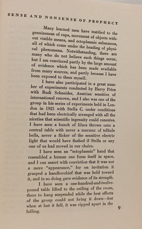 Creative Age Press 1950 in8. 1950. Cartonné. The Sense and Nonsense of Prophecy est une analyse intelligente ironique et pleine d'esprit des diseurs de bonne aventure des devins et des faux prophètes qui exploitent un public crédule. L'ouvrage examine pourquoi ces personnages existent et ce qui les a façonnés