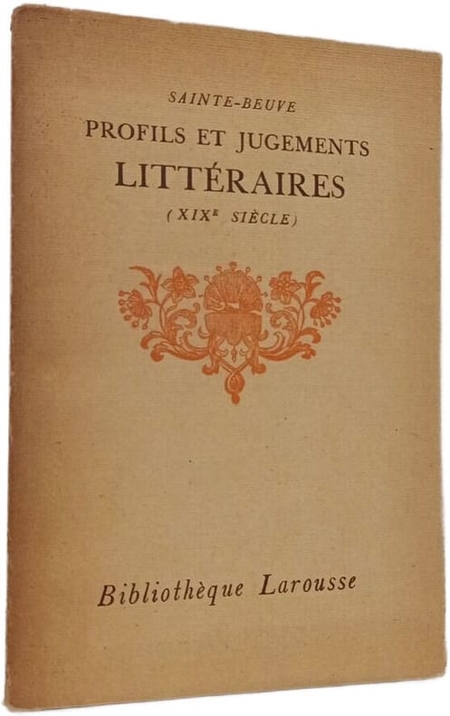 Larousse 1927 in8. 1927. Broché. Profils et jugements littéraires est un ouvrage de critique littéraire de Sainte-Beuve qui analyse les auteurs et leurs œuvres en particulier ceux du XVIIIe siècle. L'ouvrage présente sa méthode critique basée sur l'étude biographique et psychologique des écrivains pour comprendre leur création littéraire