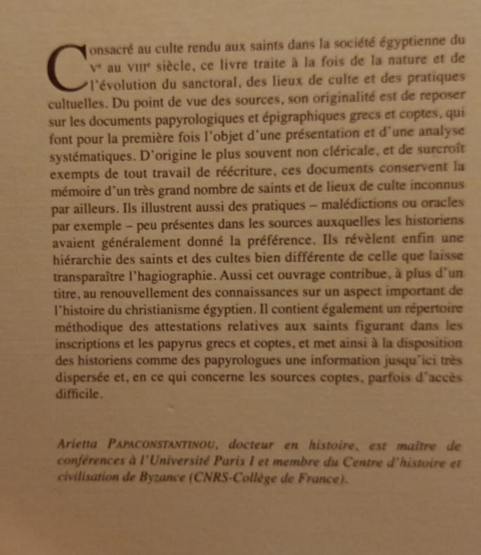 CNRS EDITIONS 2001 17 2x23 2x3cm. 2001. Cartonné. Cet ouvrage académique étudie le culte des saints en Égypte entre les Ve et VIIIe siècles couvrant les périodes byzantine et abbasside. Il se fonde principalement sur l'analyse des inscriptions et des papyrus grecs et coptes pour comprendre les pratiques religieuses et sociales de cette époque