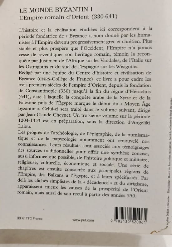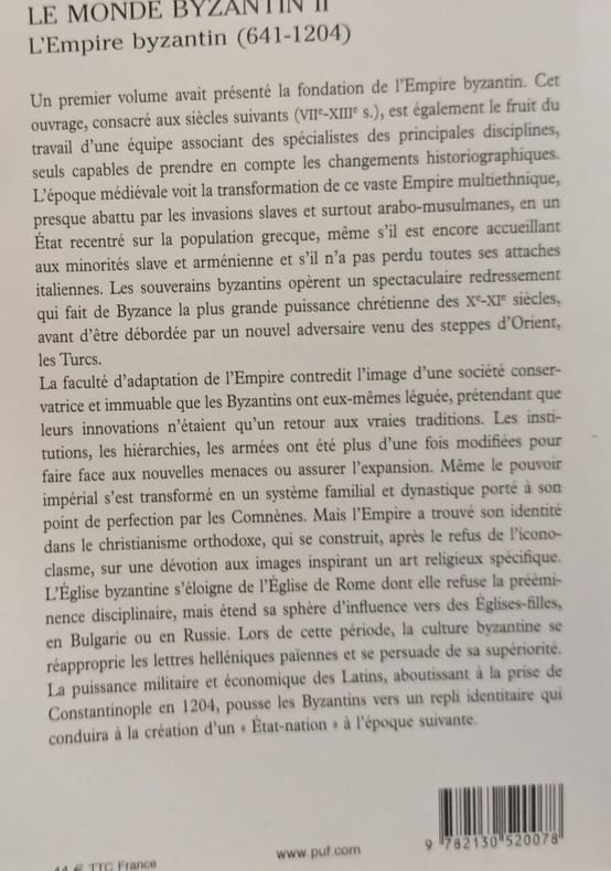 PUF 2011 in8. 2011. Broché. 3 volume(s). Premier tome d'une série sur le monde byzantin consacré à la période fondatrice de l'Empire romain d'Orient de la fondation de Constantinople en 330 aux débuts de la conquête arabe au milieu du VIIe siècle. L'ouvrage aborde l'histoire et la civilisation de cet empire qui devenu progressivement grec et chrétien a revendiqué son héritage romain et connu des reconquêtes sous Justinien