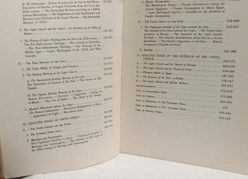 Cairo press 1970 in8. 1970. Broché. Livre académique d'Otto F. A. Meinardus spécialiste allemand de la coptologie sur l'Église copte en Égypte. Il traite de la foi et de la vie chrétienne dans ce contexte avec des références bibliographiques et un index