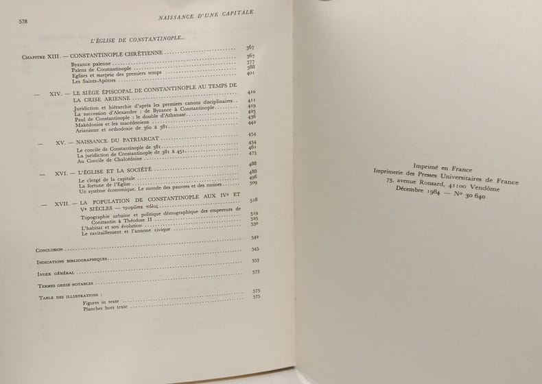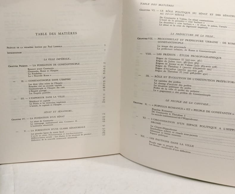 Presses Universitaires de France in8. Sans date. Broché. 2 volume(s). Ouvrage historique de Gilbert Dagron analysant la fondation et le développement de Constantinople comme capitale de l'Empire byzantin en se concentrant sur la période de 330 à 451. L'étude examine la topographie urbaine l'évolution de l'habitat et les mesures institutionnelles notamment pour l'approvisionnement en blé