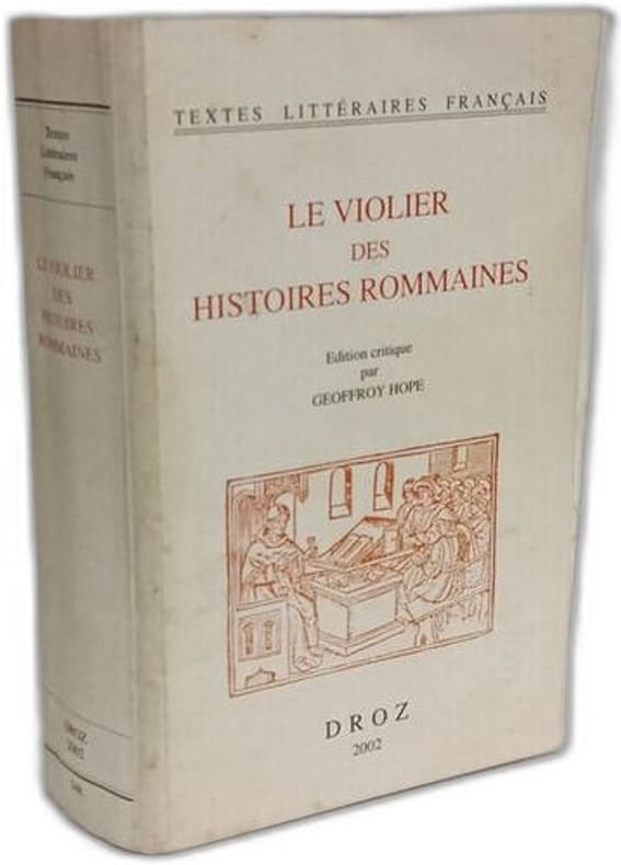 Droz Librairie 2002 678 pages 11 43x4 064x17 78cm. 2002. Broché. 678 pages. Il s'agit d'une édition critique moderne du 'Violier des histoires rommaines' un best-seller médiéval réalisée par Geoffroy Hope. Cette édition vise à remplacer la transcription plus ancienne de Gustave Brunet (1858) par une version plus accessible et à jour. Le livre est une anthologie (un 'bouquet') d'histoires comiques tirées de fabliaux de fables de vies de saints et de récits d'aventure romanesque