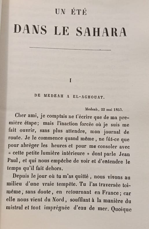 ÉDITIONS JACQUES-MARIE LAFFONT ET ASSOCIÉS 1981 in8. 1981. Broché. Un été dans le Sahara est le récit du voyage d'Eugène Fromentin à travers le sud algérien et de son séjour à Laghouat pendant l'été 1853. C'est le premier livre d'un peintre qui va au-delà des simples descriptions touristiques pour offrir une vision approfondie de la région en pleine colonisation française