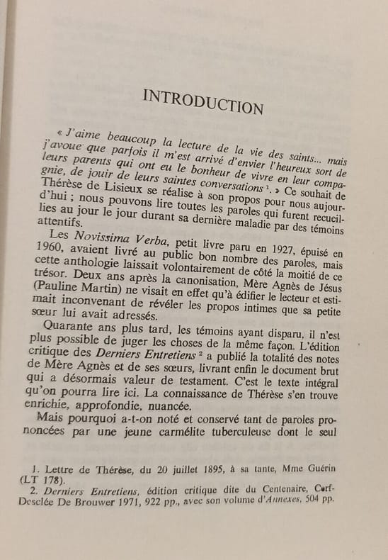 CERF DDB 1973 in8. 1973. Broché. Ce livre présente les derniers entretiens de Sainte Thérèse de l'Enfant-Jésus et de la Sainte-Face recueillis pendant les cinq derniers mois de sa vie alors qu'elle était gravement malade. Il révèle comment elle a vécu ses souffrances avec une foi profonde transfigurant son épreuve par l'espérance et l'amour jusqu'à sa mort à l'âge de 24 ans