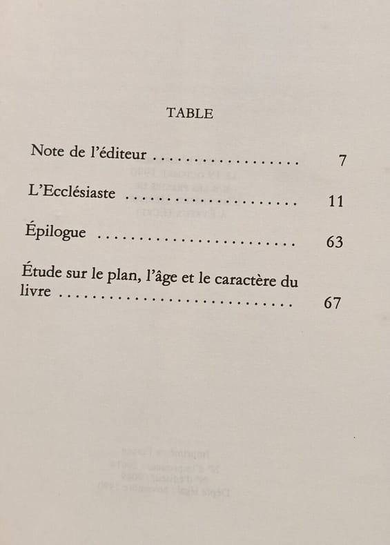 Arléa 1990 in8. 1990. Broché. Ce livre présente la traduction de l'Ecclésiaste (ou Cohélet) par Ernest Renan un texte de l'Ancien Testament rédigé en hébreu environ deux siècles avant J.-C. Renan accompagne sa traduction d'une étude postfaciale qui analyse l'âge le caractère et la place historique de ce livre biblique énigmatique connu pour ses aphorismes devenus proverbiales