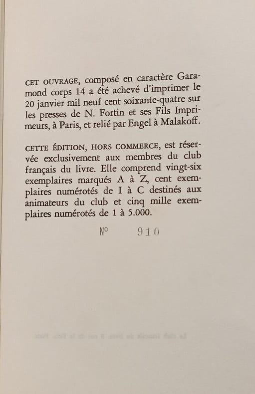 Paris, Club Français du Livre, 1964. In-8°, 149p. Reliure pleine toile illustrée d'éditeur.