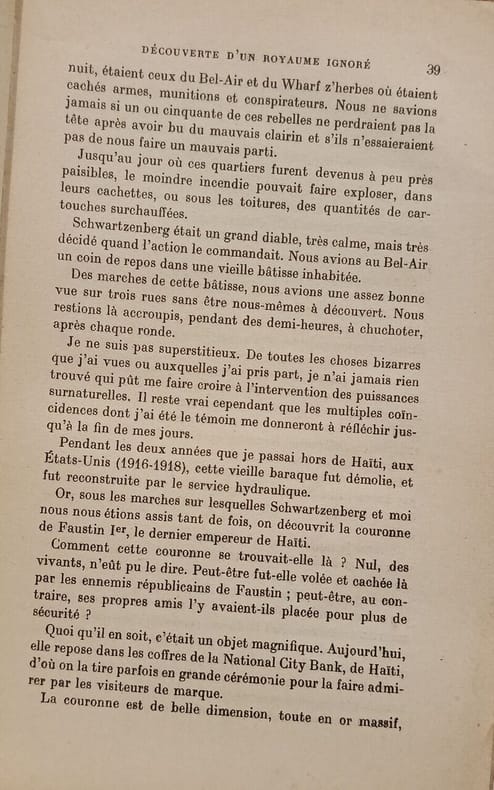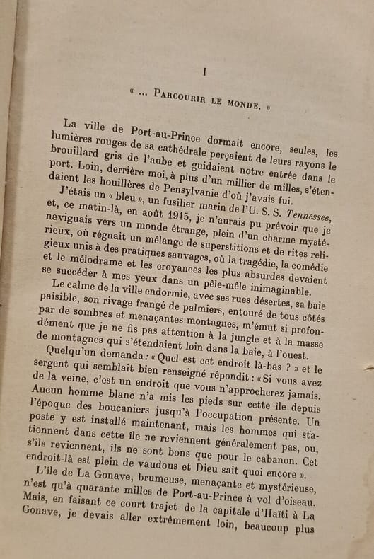 Paris, Payot, 1932, in-8, 318 pp, broché, couverture illustrée de l'éditeur, non coupé, Première édition de la traduction française de l'histoire de ce militaire américain d'origine franco-polonaise en qui la reine et la population de l'île de La Gonave ont cru voir une réincarnation d'un empereur et qui régna sur ce peuple pendant trois ans. Rare. Couverture rigide