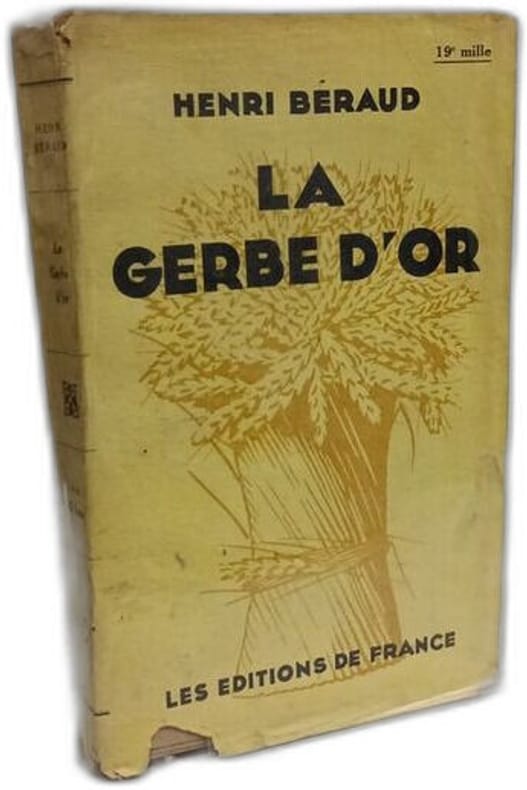 Les Éditions de France 1928 in12. 1928. Broché. Henri Béraud écrivain lyonnais et lauréat du prix Goncourt rassemble dans 'La Gerbe d'or' ses souvenirs d'enfance et de jeunesse heureuse dans le Lyon de la fin du XIXe siècle évoluant autour de la boulangerie tenue par ses parents. Le livre publié en 1928 célèbre l'amour filial l'attachement au pays natal et offre de belles descriptions imagées avant que l'auteur ne connaisse des déboires pendant la Seconde Guerre mondiale