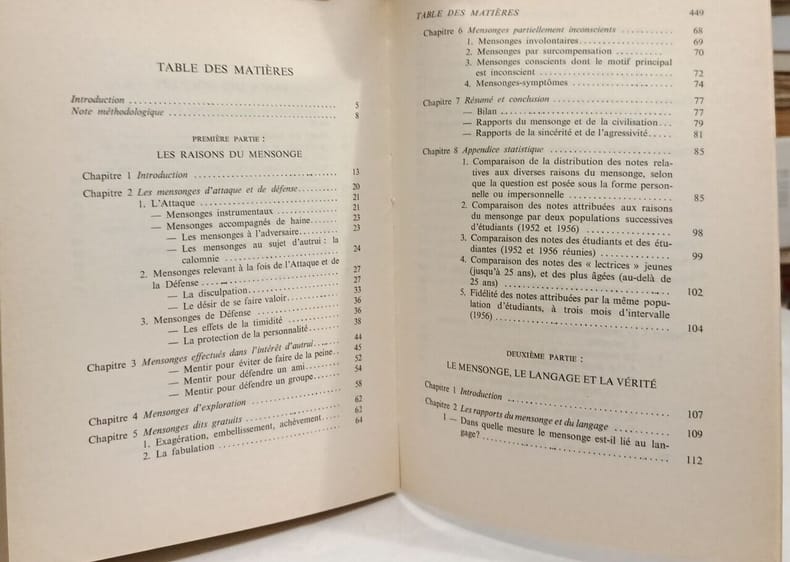 'Nouvelle Bobliothèque scientifique', dir. par Fernand Braudel. Les mensonges d'attaque et de défense. Mensonges d'exploration. Les raports du mensonge et du langage... Classification Dewey : 150-Psychologie