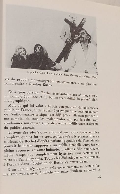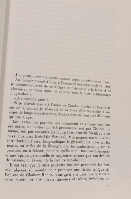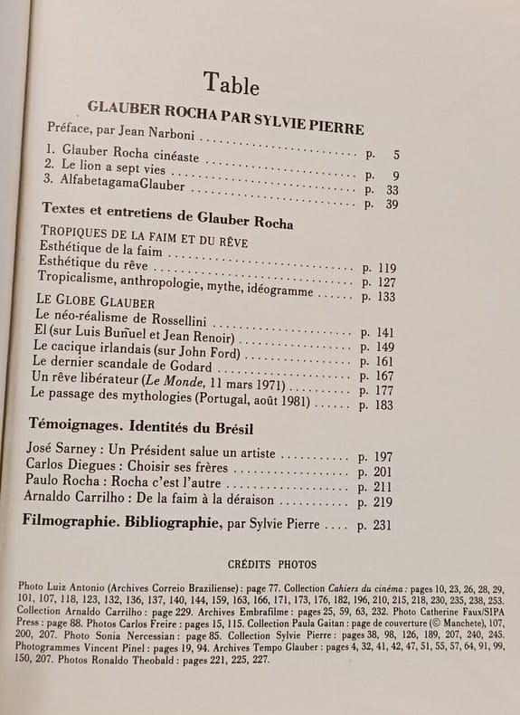Paris, Cahiers du cinéma, "Auteurs", 1987, 16,5 x 21,5, 256 pages cousues sous couverture souple illustrée. Textes et entretiens de Glauber Rocha ; témoignages ; bibliographie et filmographie. Reproductions noir & blanc.