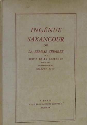 Edition originale, premier tirage, de louvrage "le plus cruel de Restif".Eugénie Saxancourt raconte les infortunes dune jeune fille mal mariée, livrée à un mari-tortionnaire qui lui inflige les sévices les plus ignobles, moraux comme physiques. Le modèle en serait sans doute Agnès, la propre fille de lauteur, dont on sait quil fut amoureux et quon soupçonne davoir abusé.On a pu écrire que cétait "lun des livres les plus atroces qui soit sur les violences conjugales, inoubliable grâce au personnage dAgnès-Ingénue, si totalement abandonnée de son entourage, et surtout à celui de Moresquin, dont la monstruosité ne le cède quaux héros de Sade".Paul Lacroix notait pour sa part : " Il est très possible que ce livre ait été rédigé par Agnès elle-même, qui savait écrire et qui, à lexemple de sa mère, composait des vers et des pièces de théâtre. Cet ouvrage est le plus rare de tous ceux de Restif, soit que lédition ait été détruite en bloc, soit que les exemplaires aient été recherchés systématiquement pour être supprimés un à un. Restif, en effet, a dépassé dans ce roman toutes les bornes du cynisme (...). Ingénue Saxancour est aujourdhui absolument introuvable."Chaque volume contient, enchâssé au milieu du récit, une pièce de théâtre.(Conlon, 'Siècle des Lumières', 89 :10611. Paul Lacroix (P.L. Jacob), 'Restif', n° XXXVI, p. 313-319. Rives Child, n° XXXV-1, p. 307-309, qui ne recense que 4 exemplaires dont le sien). Exemplaire bien complet des quatre feuillets des 'Provinciales' du tome III et des pages 249-252 du même volume qui ont été retranchées de la plupart des exemplaires.Au tome III, angle supérieur des feuillets 127 à la fin restaurés avec quelques atteintes au texte.Bel exemplaire, non rogné, frais, très bien relié.