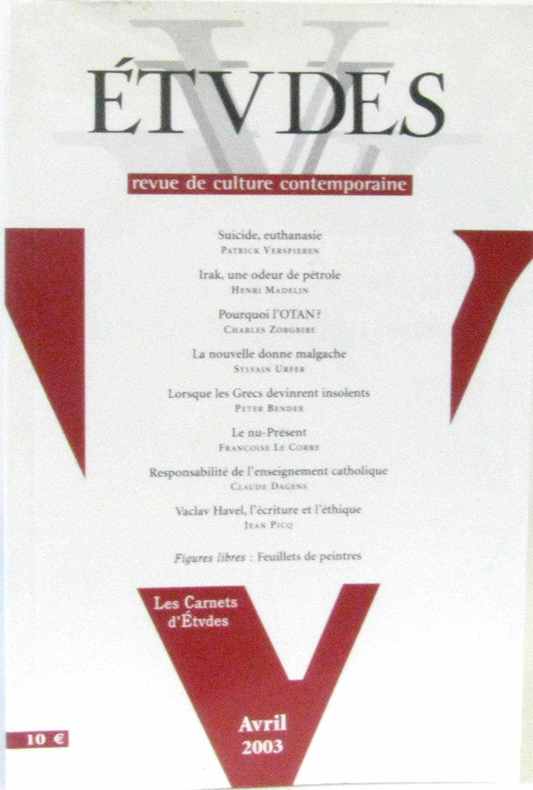 Etudes / Bayard avril 2003, in-8 broché, p433p576 - très bon état