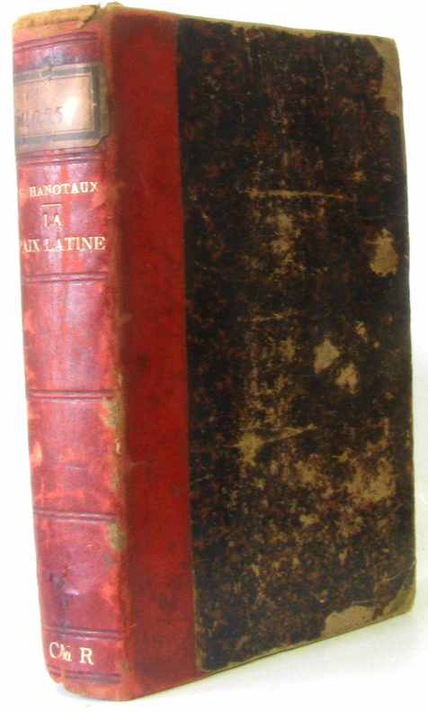 Édition originale. Ancien ministre des affaires étrangères, l'auteur défend et justifie la solidarité entre les nations latines. Un des 10 exemplaires de tête sur papier de Hollande, celui-ci non numéroté, enrichi d'un envoi autographe de l'auteur à Paul Hébert. Bel exemplaire relié par Franz Ostermann. Dos légèrement passé. Talvart & Place, VIII, pp. 50-51 (n'ont pas connaissance des grands papiers).