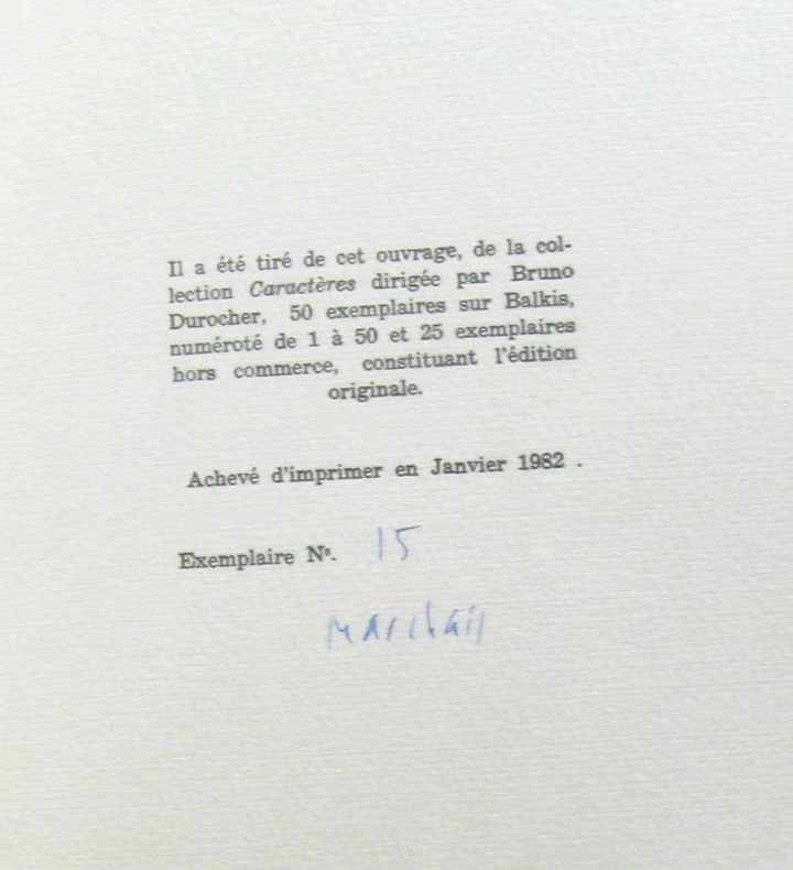 Caractères 1982 55 pages in4. 1982. Broché. 55 pages. exemplaire n°15 sur 50 imprimé sur Balkis