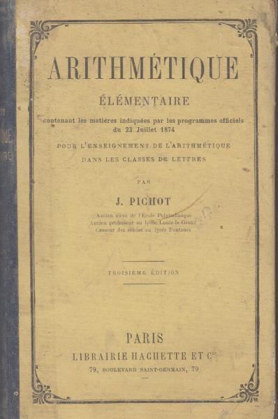3e et 19e éditions. A l'usage des Ecoles Primaires et des Classes de Grammaire des Lycées et Collèges. Avec les premières Notions de Géométrie. Classification Dewey : 372.7-Livre scolaire : mathématiques