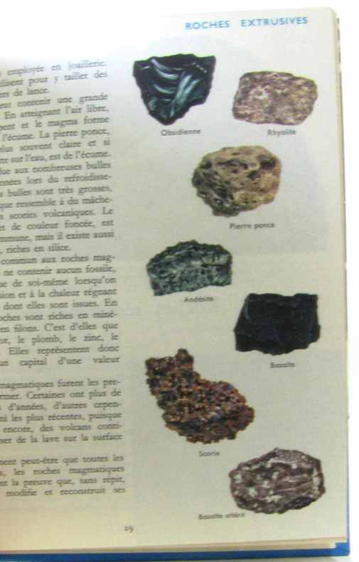 Sommaire : le travail sur le terrain - roches éxogènes - poudingues - roches sableuses - schistes - roches argileuses - roches arénacées - roches détritiques - roches endogènes - bréches - roches endogènes - combustibles - craie - calcaires - marbres - phyllades - roches acides - roches holocristallines etc... Classification Dewey : 551-Géologie