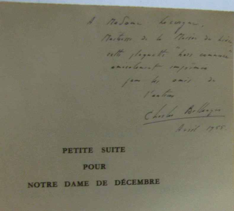 Très Bon Etat circa 1955 pages non coupées "intérieur très frais annotation sur le faux titre: "A madame [...] cette plaquette "hors commerce" amicalement imprimée pour les amis de l'auteur. Charles Bellanger amicalement avril 1955"
