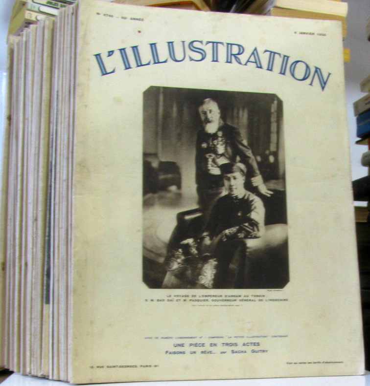 L'illustration 1933 in folio. 1933. Broché. Texte en colonne illustrations en noir et blanc qq unes en couleurs pleine page sur papier contre collé revue d'actualité ---37 numéros de l'année 91 de janvier à décembre: 4688-4689-4690-4691-4693-4695-4697-4698-4699-4700-4702--4703-4705-4709-4710-4711-4712-4715-4719-4720-4721-4722-4724-4725-4726-4728-4730 ---15 numéros de l'année 92 de javier à décembre: 4740-4742-4750-4753-4762-4772-4774-4776-4778-4781-4782-4784-4786-4788-4791