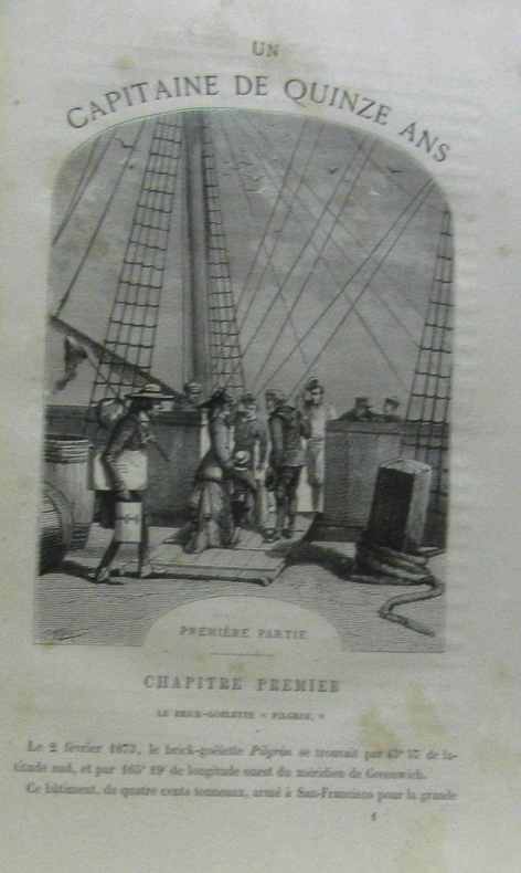 Collection les voyages extraordinaires Complet deux tomes, superbes reliures, têtes dorées, signets, lettrines, culs-de-lampe reliure plein cuir, 21x14, ornées sur le dos de motifs dorés, très bon état, parfait état intérieur, 338, 310pages. Jean de Bonnot, 1976 Aventures de trois russes et trois anglais : Une mission scientifique pré monitoire - Tome 19 Six astronomes doivent rester unis malgré leurs très grandes différences de caractère, dans la nature africaine, alors que leurs pays respectifs se déchirent, en une guerre lointaine. Hommage appuyé aux expéditions scientifiques, le roman est aussi le portrait d’un colonialisme suprématiste très brutal, malgré la peinture du guide bushman, personnage central pour la survie de l’équipe. Une virulente dénonciation de l’esclavage : Un Capitaine de quinze ans -Tomes 20 Dick Sand est encore novice sur une goélette lorsqu’il doit remplacer le capitaine mort tragiquement. La traîtrise d’un survivant l’entraîne, avec tous les passagers, sur une côte africaine où ils sont faits prisonniers par de sanguinaires trafiquants d’esclaves. Pour s’échapper, ils devront faire preuve de courage et de ténacité dans un univers d’une réelle brutalité. Un livre pour adultes avertis seulement.
